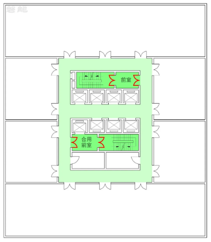 【圖示2】雙向疏散走道(中間雙向箭頭區(qū)域)