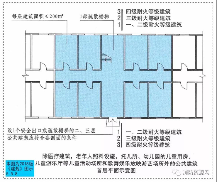 石崢嶸:新版《建規(guī)》圖示允許在建筑的局部區(qū)域設(shè)置1個安全出口或1部疏散樓梯(圖示5.5.8),容易擴(kuò)展為極端方案!