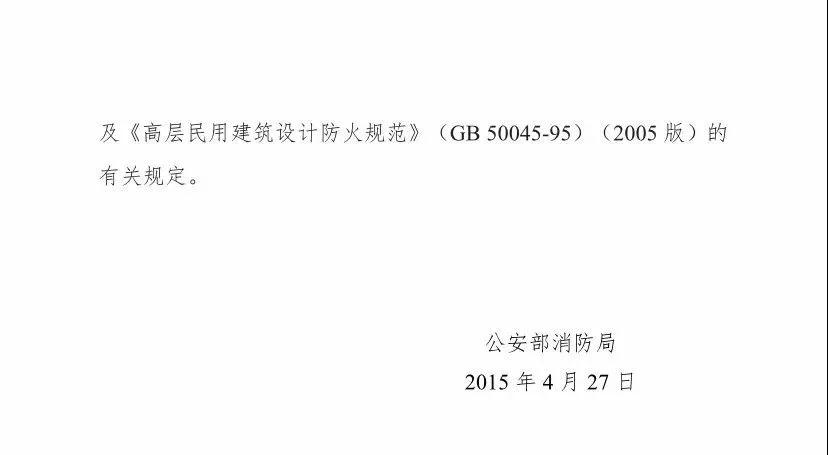“公消[2015]98號”文件發(fā)布于2015年4月27日,明確了《建筑設計防火規(guī)范》(GB 50016-2014)以及后續(xù)發(fā)布的其他新版消防技術規(guī)范的執(zhí)行要求,原文摘錄如下:
