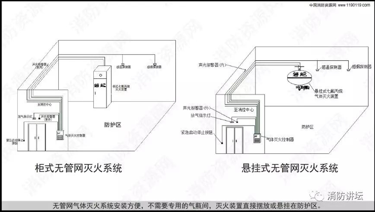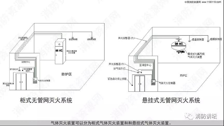 氣體滅火分為有管網(wǎng)滅火系統(tǒng)和無管網(wǎng)滅火系統(tǒng)! 無管網(wǎng)滅火系統(tǒng)又稱為預(yù)制滅火系統(tǒng),分為懸掛式、柜式滅火系統(tǒng),概念糾結(jié),這里一次性講清楚了