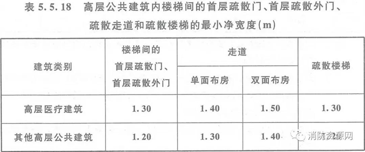 、根據(jù)《建筑設計防火規(guī)范》要求(5.5.18):除規(guī)范另有規(guī)定外,公共建筑內(nèi)疏散門和安全出口的凈寬度不應小于0.90m,疏散走道和疏散樓梯的凈寬度不應小于1.10m。高層公共建筑內(nèi)樓梯間的首層疏散門、首層疏散外門、疏散走道和疏散樓梯的最小凈寬度應符合表5.5.18的規(guī)定。