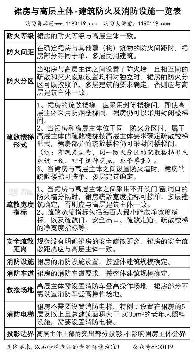 裙房與高層主體-建筑防火及消防設(shè)施一覽表!
