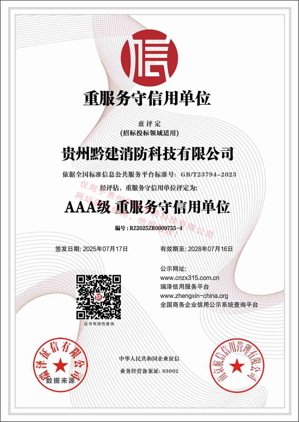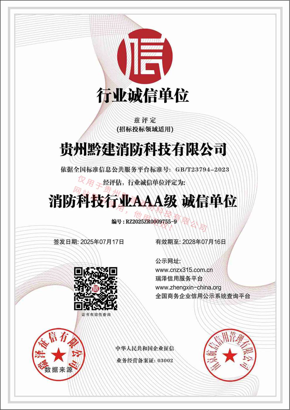 消防科技行業(yè)AAA級(jí) 誠(chéng)信單位